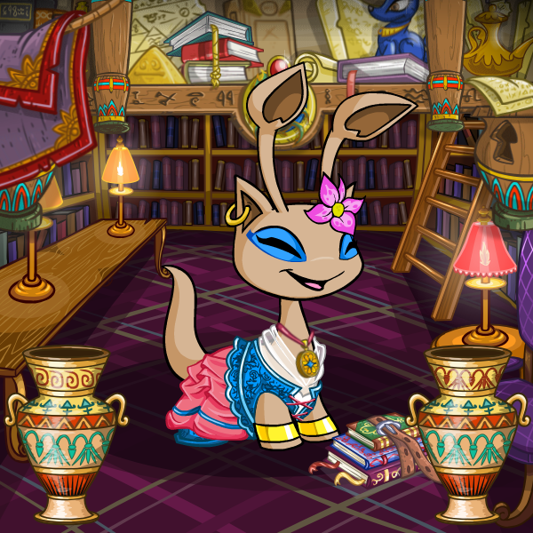 Cleopatra (Cleo for short) was my very first Neopet I created! As a kid I envisioned her as a booksmart tomboy - the kind of cool girl I'd read adventure books about and wanted to be myself. She stood up for her friends (especially my shyer pets) and loved learning about the world. I dreamt as a kid of making her a Desert Aisha, to fit with the Lost Desert theme I liked for her. Even when I was playing "seriously" as an adult... those morphing potions were pricey, what can I say.