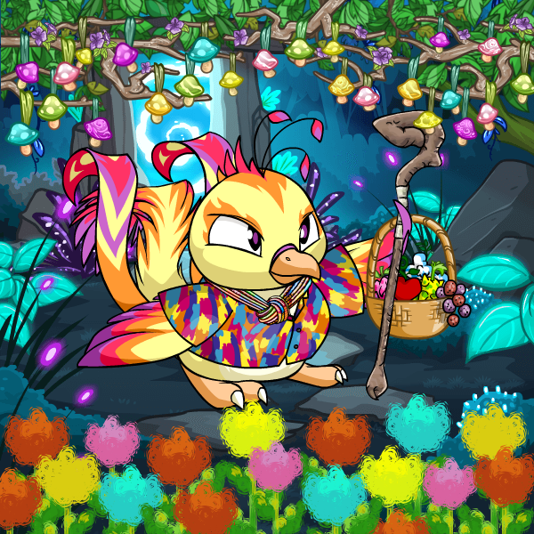 One of my favourite things with a forest aesthetic that I thought might match to build a guy around is Mushishi, so I named him Ginkomori. Ginko is the name of the guy from Mushishi, and in Japanese, koumori is bat, and mori is forest. I don't actually know if this pun is very successful in Japanese, as I am still a beginner student of the language. But the name was not taken, and on Neopets, a pet name with no numbers is prime real estate - so I took it on the whim. I guess I'll hope for the best.